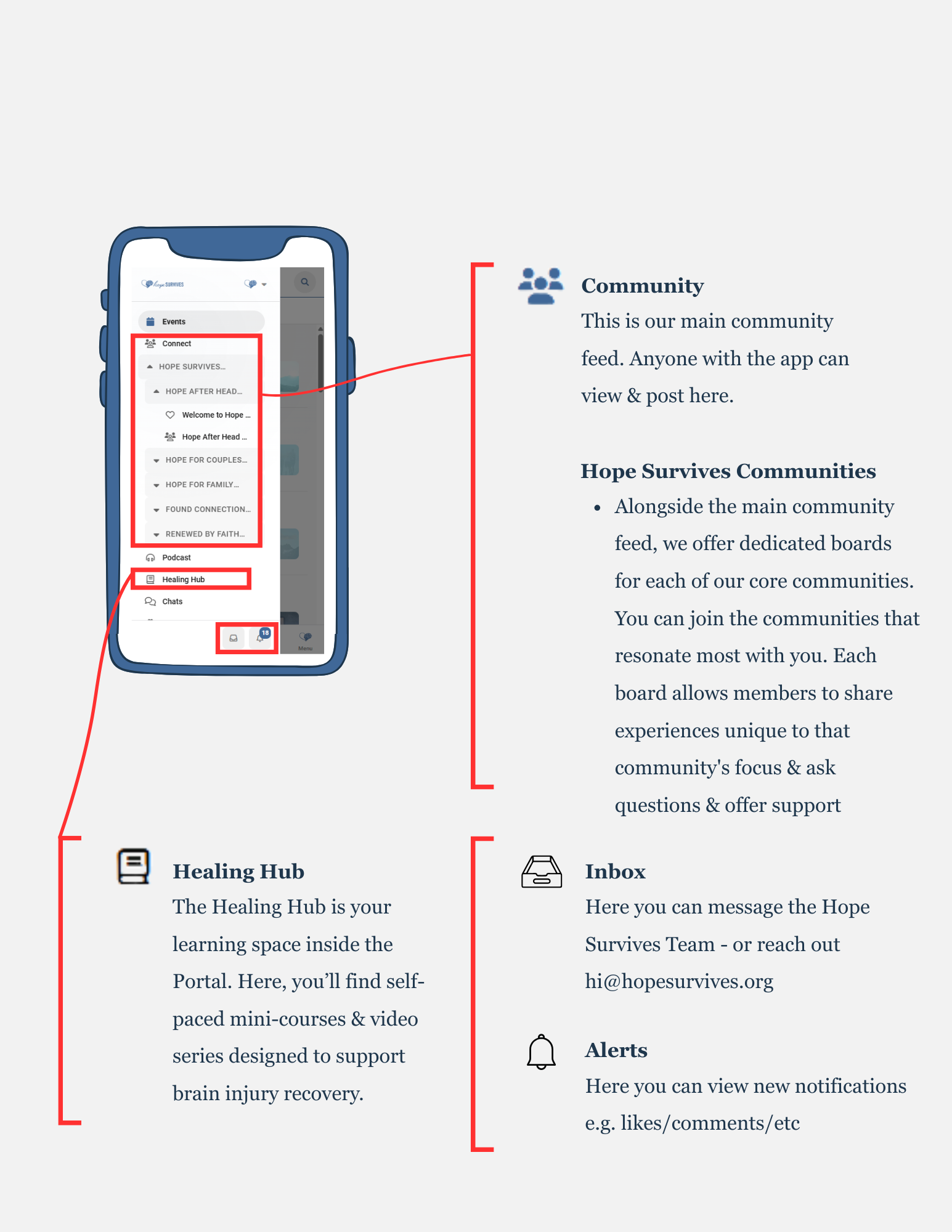 Reach out to us: hi@hopesurvives.org if you have any questions or need help accessing our app community!
