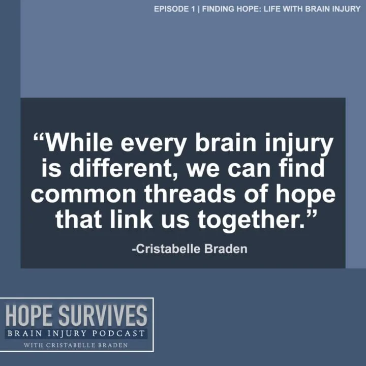 On this episode, host Cristabelle Braden invites her mother, Cyndie Braden, to join for a conversation sharing some of their family’s journey on finding hope through brain injury, the symptoms and struggles they have faced, and encouragement to fellow survivors and caregivers.
