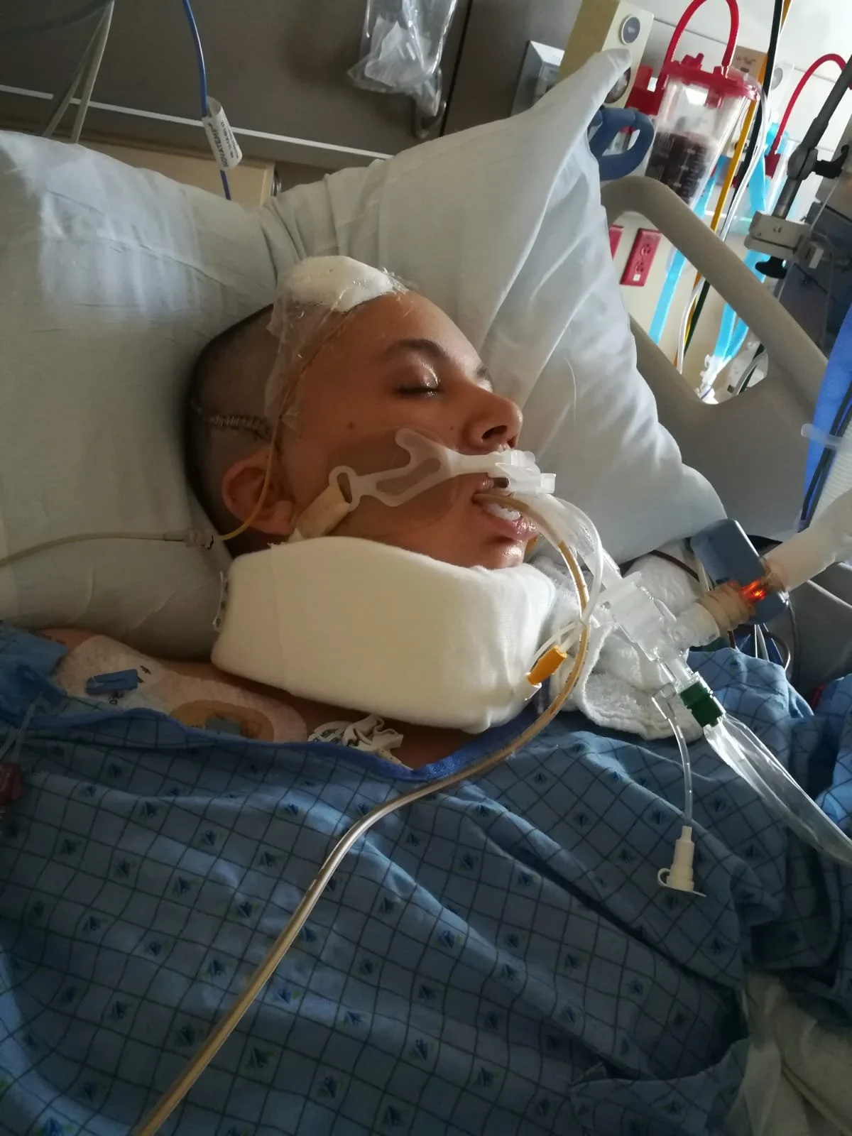 I do not remember the first weeks, I do, however remember waking up with a tube down my throat and nose and both hands tied to my bed. I was unable to move and in the most extreme pain I have ever been in.